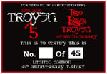 Limited Edition 45th Anniversary T-Shirt Size (L). Only 45 T-shirts are being produced. Each Shirt will come with an A5 Certificate of Authentication